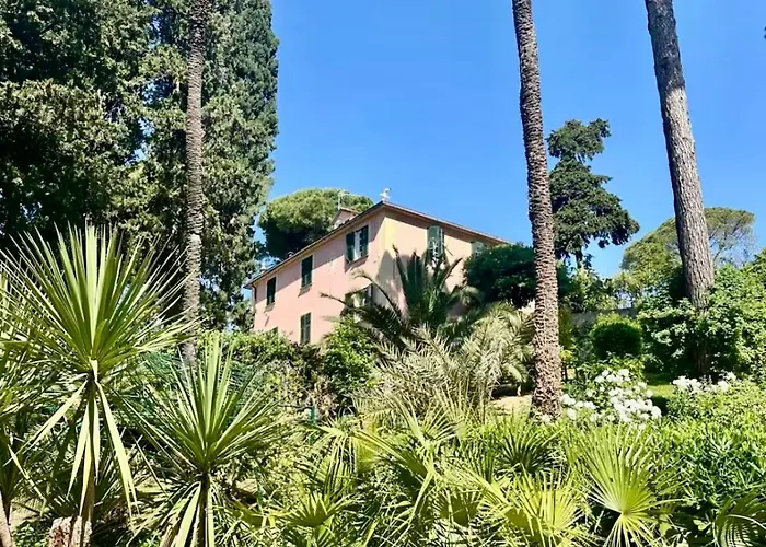 Giardino In Villa Margherita 佐阿利位于Tessitura Artigiana Giuseppe Gaggioli旁边并面朝花园. 公寓距离Chiesa di S. Siro有10分钟的车程,距离拉帕洛高尔夫有10分钟的车程.